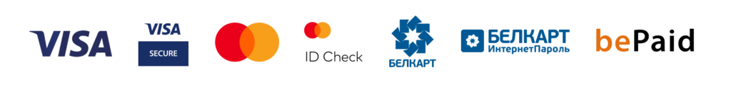 Мы принимаем платежи по следующим банковским картам: Visa, Visa Electron, MasterCard, Maestro, Белкарт